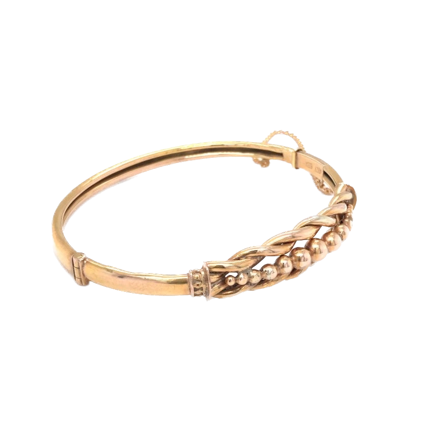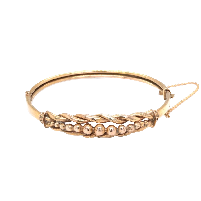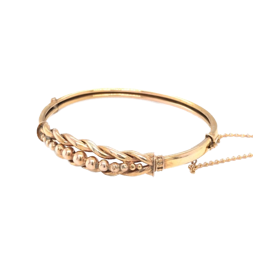 Victorian 9ct Yellow Gold Bangle With Twist & Ball Design