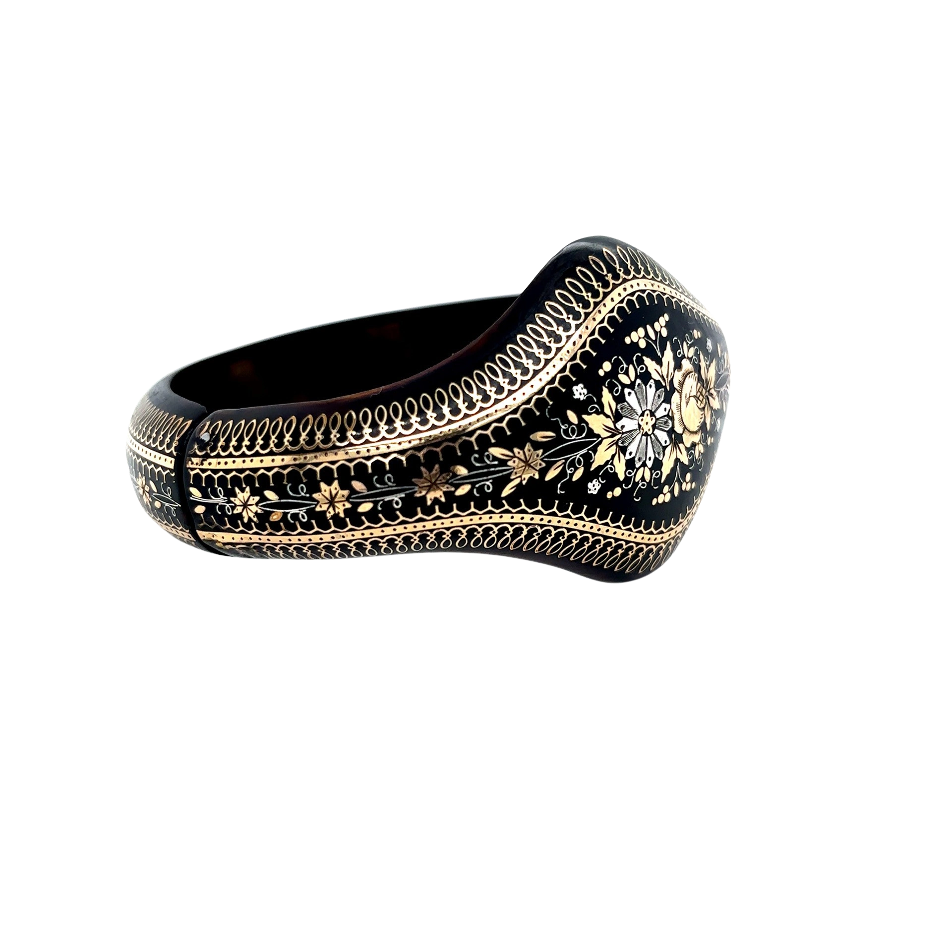 This Victorian Pique tapered expansion bangle has beautiful floral detail , c1890 .It is a such a unique piece that you'll want in your collection today!