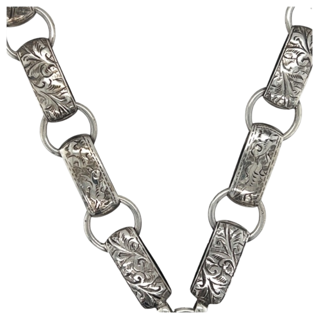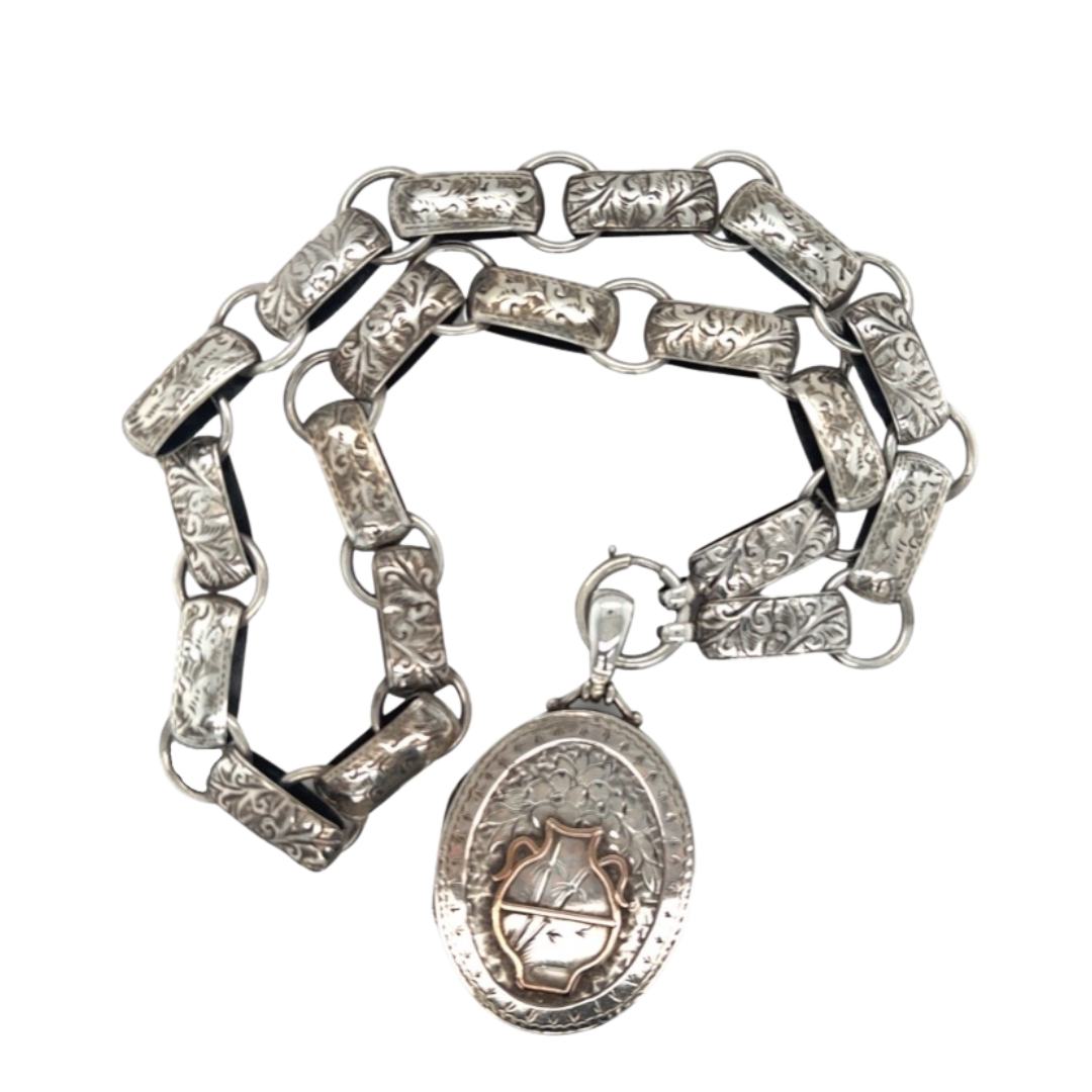 Our gorgeous Victorian Silver Locket and Collar Birm 1881 has beautiful engravings, come and view this piece in store now.