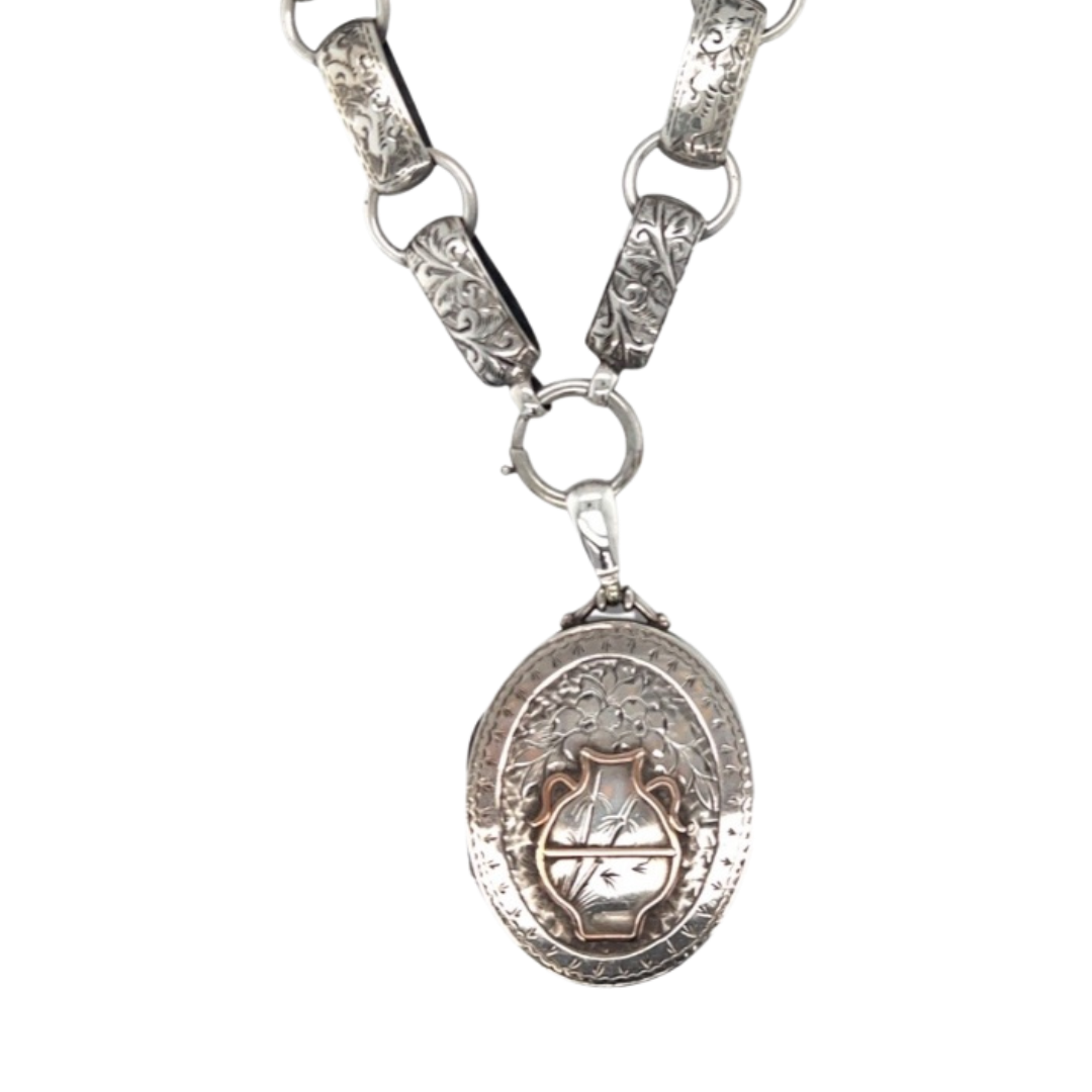Victorian Silver Locket and Collar Birm 1881