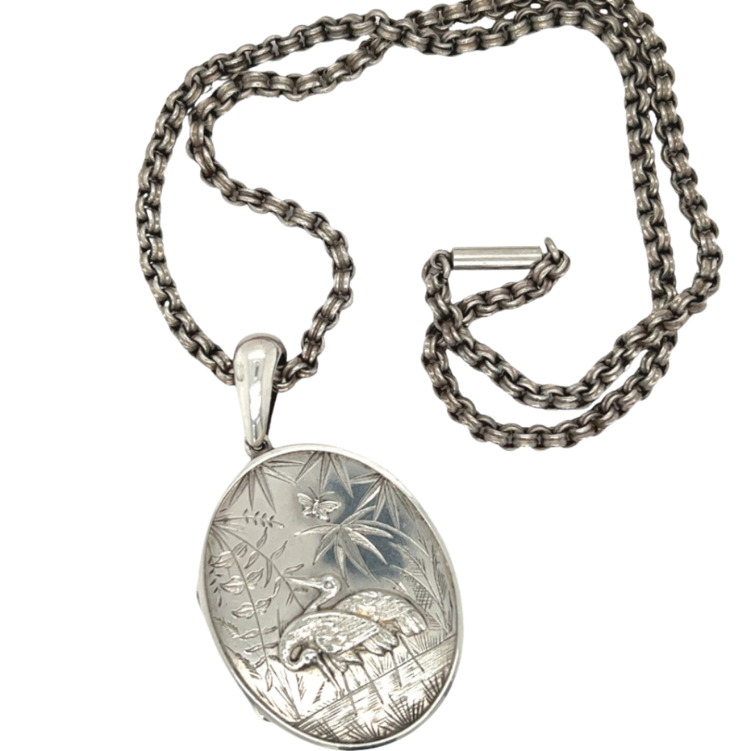 Victorian Sterling Silver Repousse Locket and Belcher Chain c1890.
